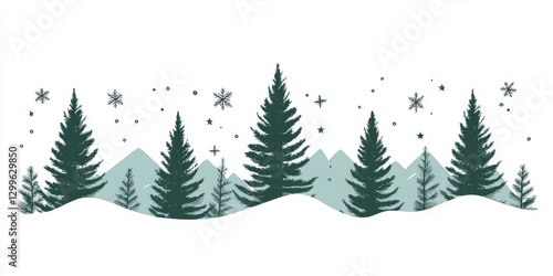 Fototapeta premium Snowy Forest Landscape Illustration
