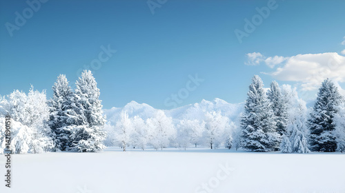 Naklejka premium Snowy Forest Landscape Under Clear Blue Sky