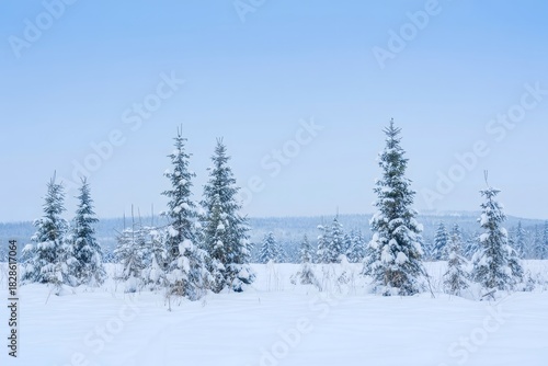 © Vision Grid, Fototapeta premium Snowy Forest Landscape with Evergreen Trees - Winter Scene
