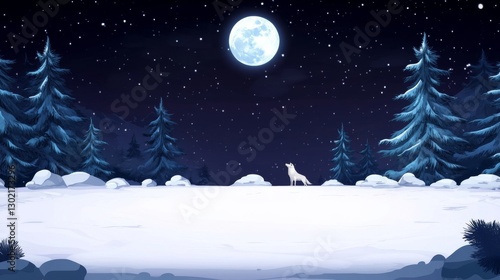 © logitech, Fototapeta premium Snowy forest night, solitary wolf