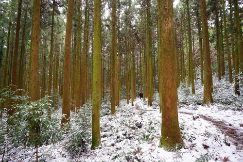 © SooHyun, Obraz premium snowy forest path and people