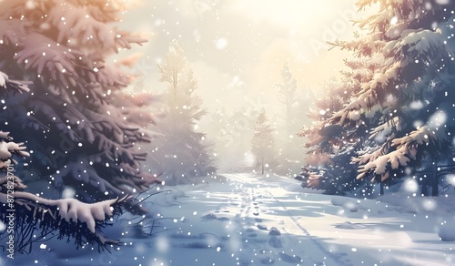 Obraz premium Snowy Forest Path Winter Wonderland