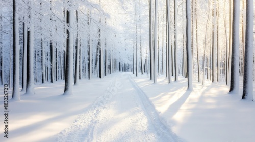 Naklejka premium Snowy Forest Path Winter Wonderland Scenery, Winter, Trees