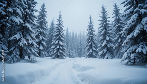 Naklejka premium Snowy Forest Path, Winter Wonderland - Winter Wonderland