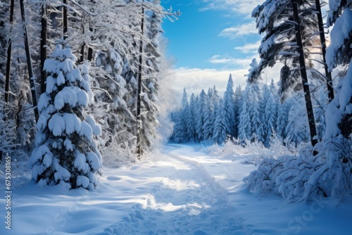 Fototapeta premium Snowy Forest Paths - Generative AI