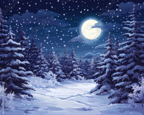 Fototapeta premium Snowy forest under a bright full moon.
