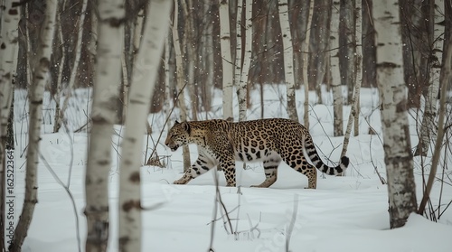 © Halil, Fototapeta premium Snowy forest with leopard