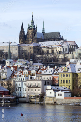 Obraz premium Snowy freeze Prague Lesser Town with gothic Castle, Czech republic