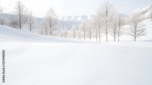 Fototapeta premium Snowy landscape, trees, mountains, winter scene, serene nature