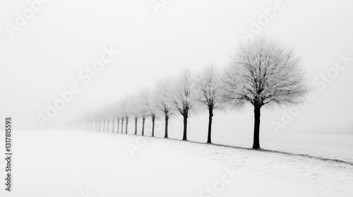 © Aleksandra, Obraz premium snowy landscape with trees copy space.