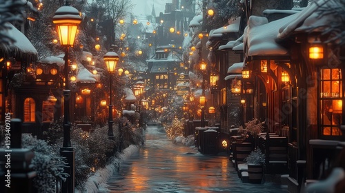 © Ika, Fototapeta premium Snowy, magical winter town with warm lights