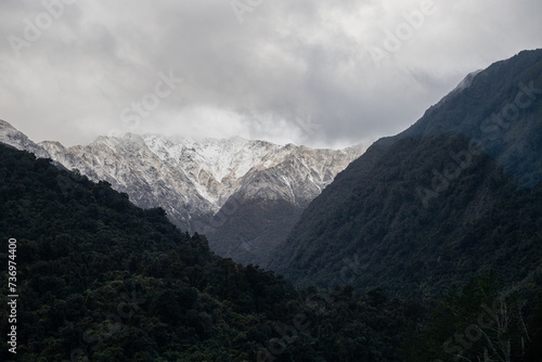 © Raquel, Naklejka premium snowy mountain behind treetops in new zealand