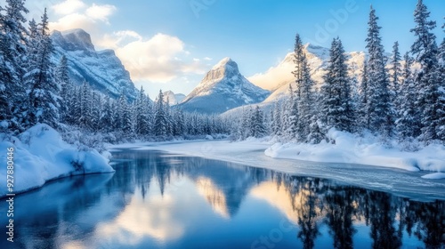 © Nas, Fototapeta premium Snowy Mountain Lake in Winter