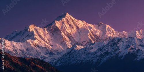 Fototapeta premium Snowy Mountain Peak at Sunrise With Purple Sky