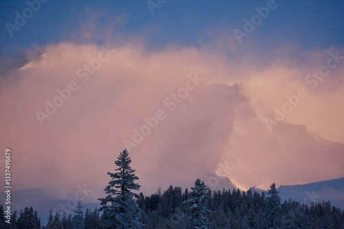 © Fernando, Fototapeta premium Snowy mountain peak in twilight