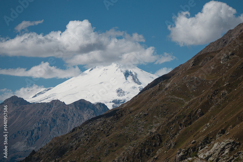 © Александр Гаврилычев, Fototapeta premium Snowy mountain peak under blue sky