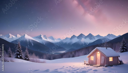 Fototapeta premium Snowy mountain peaks under a starry night sky