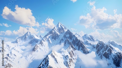 © Kanimalia, Obraz premium Snowy Mountain Range with Blue Sky.