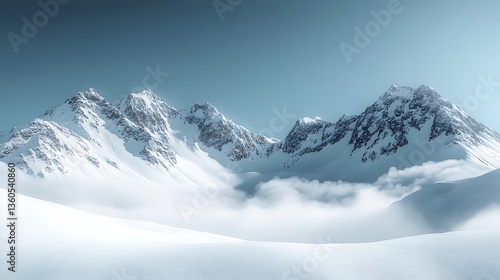 © Fita, Obraz premium Snowy Mountain Range with Winter Landscape.