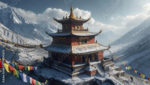 © nawang, Obraz premium Snowy mountain temple