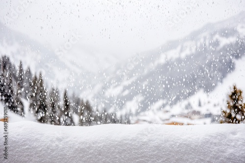© Ulil, Obraz premium Snowy mountain view through a light snowfall