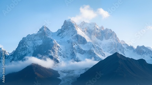 © 远驰 吴, Fototapeta premium Snowy mountains and blue sky with clouds