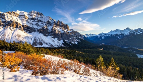 © Ana, Fototapeta premium Snowy mountains and forest landscape.