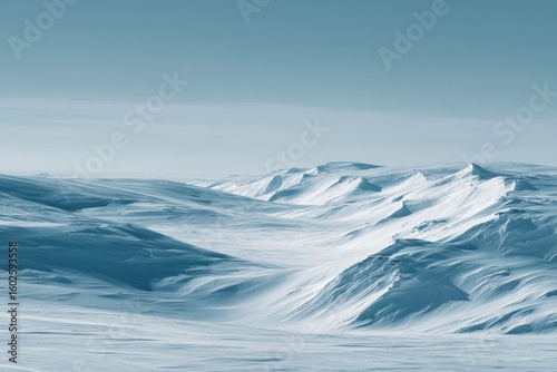 Naklejka premium Snowy mountains, vast landscape, icy blue