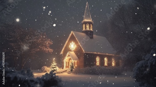 © positfid, Fototapeta premium Snowy Night at the Chapel