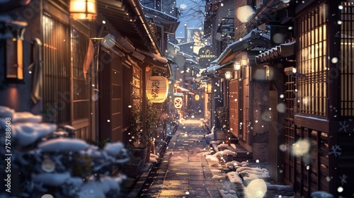 © Arti, Obraz premium Snowy Night in the City A Winter Wonderland Generative AI