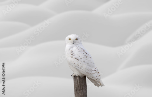 © pictureguy32, Naklejka premium Snowy Owl on Fence Post