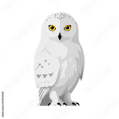 © Elena, Fototapeta premium Snowy owl standing with yellow eyes on a transparent background