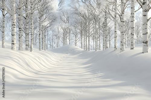 © sonswirl, Naklejka premium Snowy path through birch forest.