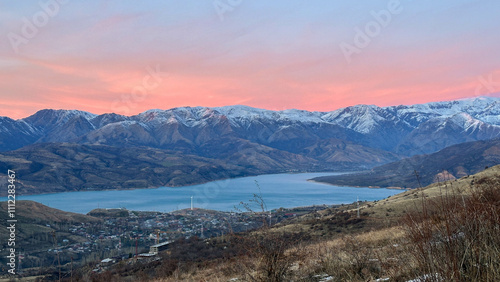© Semgrafix, Obraz premium Snowy peaks mountains at the sunset