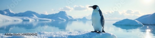 Fototapeta premium Snowy penguin standing on ice, penguins, birds