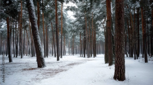 © Khai, Fototapeta premium Snowy Pine Tree Forest