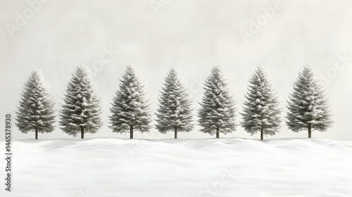 © indah, Naklejka premium Snowy pine trees line a snowy landscape