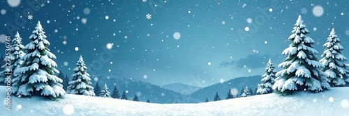 Fototapeta premium Snowy pine trees & snowflakes falling, winter illustration, festive...
