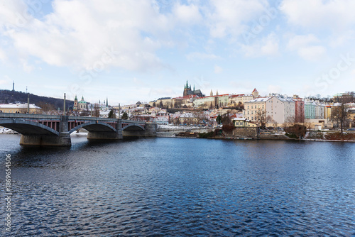 Obraz premium Snowy Prague Lesser Town with gothic Castle, Czech Republic