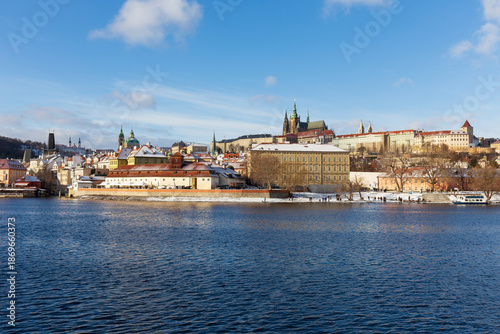 Obraz premium Snowy Prague Lesser Town with gothic Castle, Czech Republic
