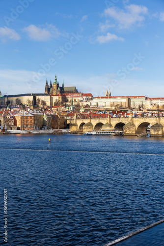 Obraz premium Snowy Prague Lesser Town with gothic Castle, Czech Republic