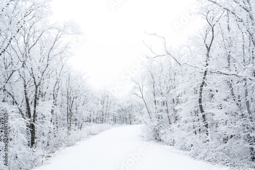 Obraz premium Snowy road in winter forest