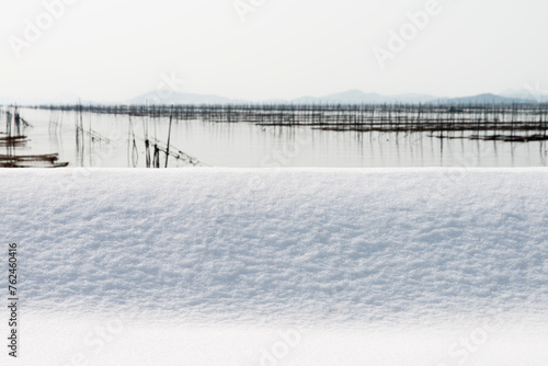© 안구정화, Obraz premium Snowy seaside at the laver seaweed farm