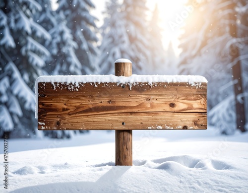 © Raf, Naklejka premium Snowy Signpost in Winter Forest