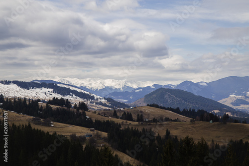 © Mykhailo, Fototapeta premium Snowy tops of the mountains are still in spring