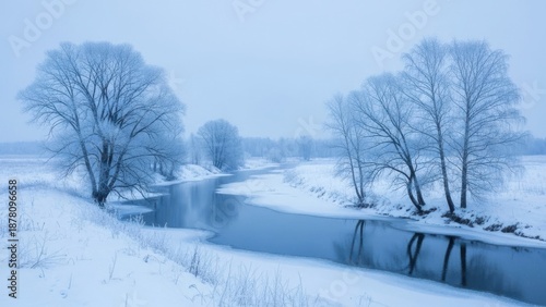© Alamgir, Fototapeta premium Snowy trees beside a frozen river