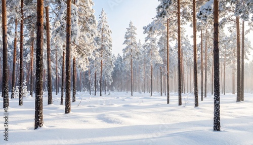 © 徹 作花, Fototapeta premium Snowy Trees in Winter Landscape