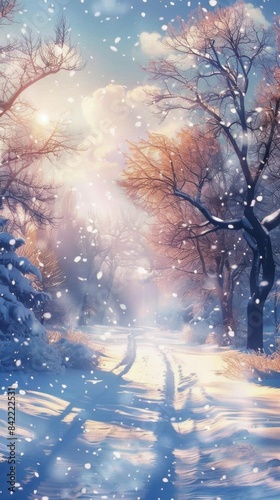 Naklejka premium Snowy Trees Under Atmospheric Sky