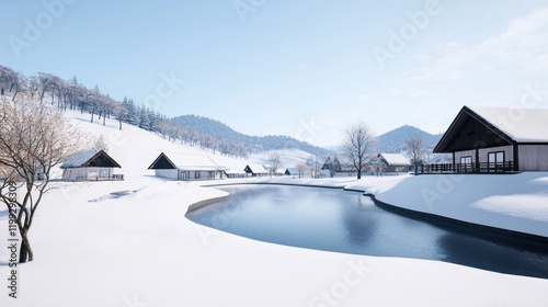 © Muhammad, Fototapeta premium Snowy Village Landscape