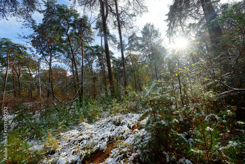 Fototapeta premium Snowy weather in the Apremont gorges